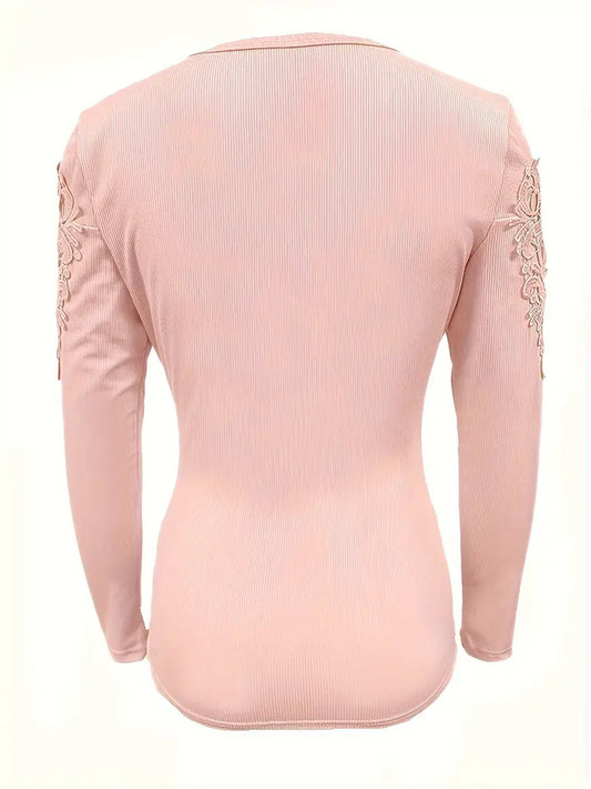Maglia Elegante con Scollo a V e Inserti in Pizzo